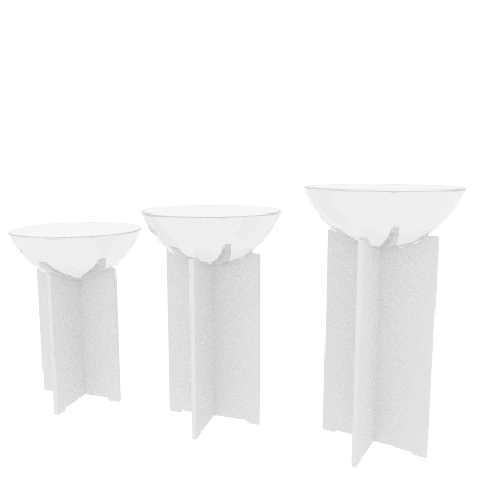 The Shop Fitters A Set of 3, includes (1 x 600mmH) + (1 x 700mmH) + (1 x 800mmH) rectangle bases with acrylic bowls, ideal for promotions and specials , two holes to the acrylic bowl allows for a Chrome A4 ticket rrame in a straight and/or angled position (sold separately)