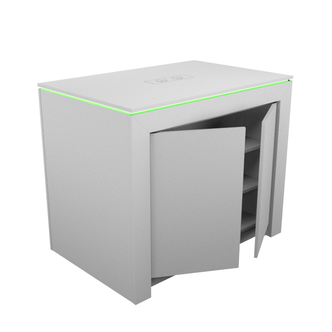Display table with rgb led lighting_1200mm w/2 x two door storage cabinets