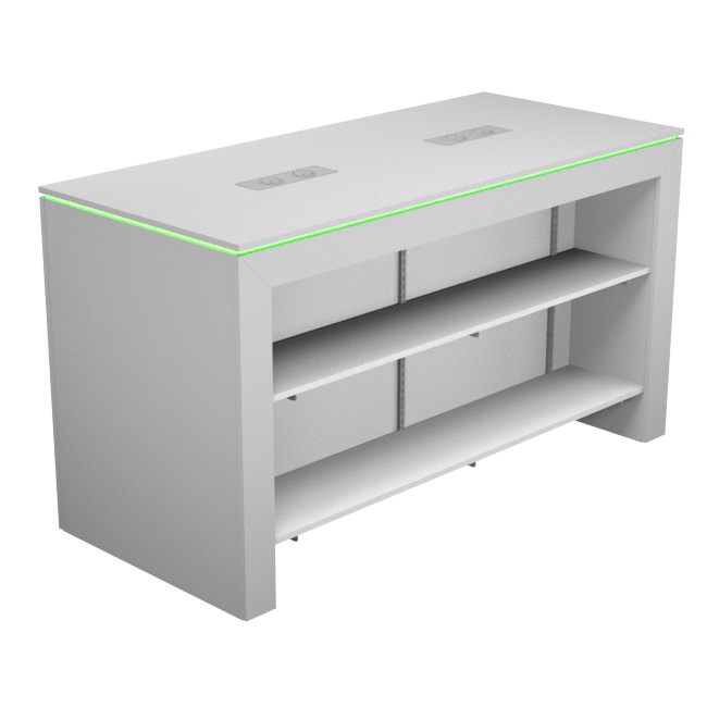 Display table with rgb led lighting_1800mm w/channel & shelves insert