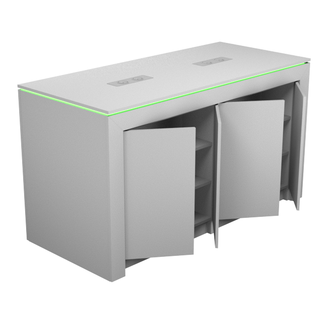 Display table with rgb led lighting_1800mm w/two door storage units - lockable