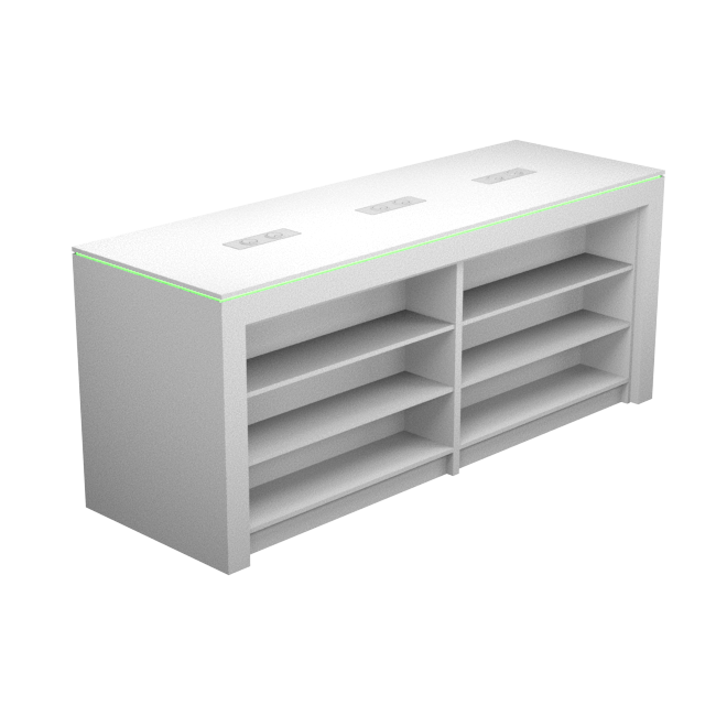 Display table with rgb led lighting_2400mm w/4 x shelf unit inserts