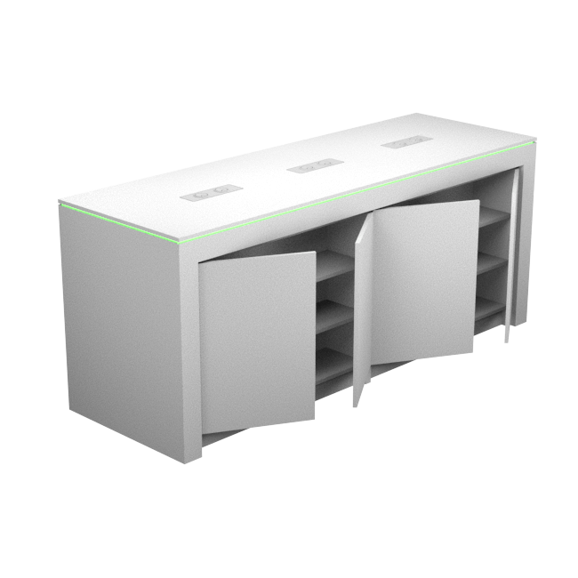 Display table with rgb led lighting_2400mm w/two door storage unit